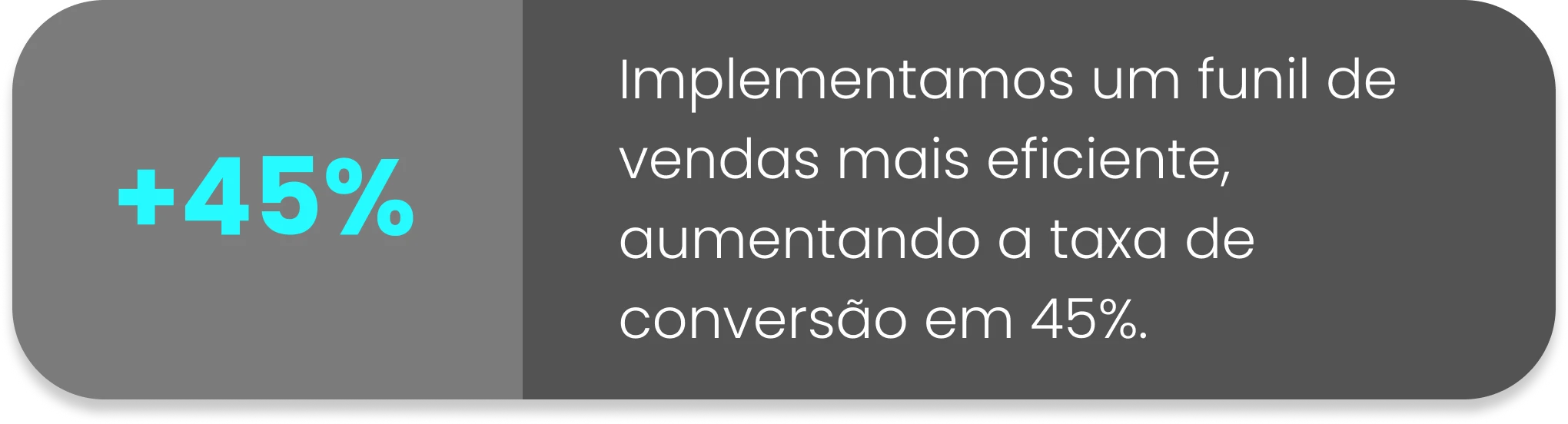 “Com uma estratégia bem definida e processos ágeis monitorados diariamente, aumentamos as vendas e conquistamos clientes satisfeitos, que geram novas vendas e indicações.”